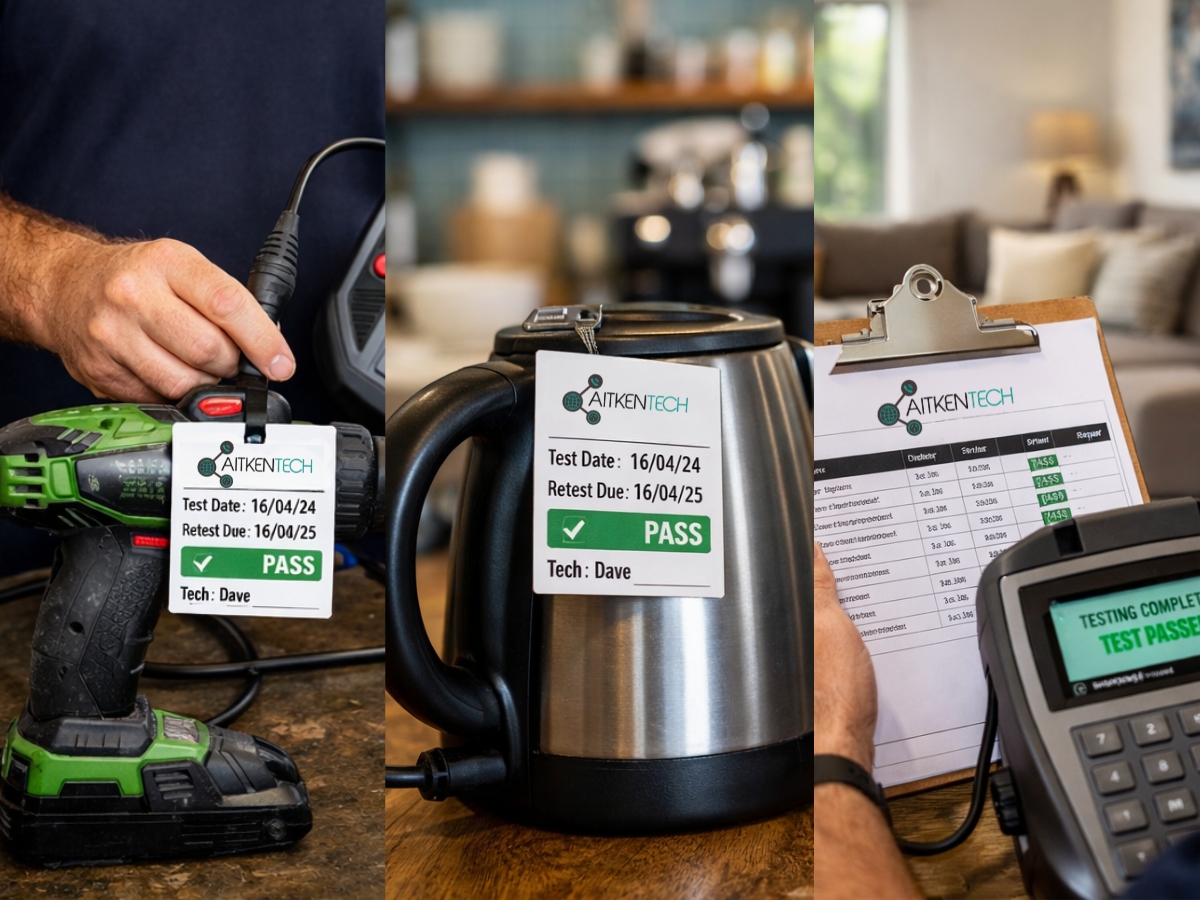 If you’d like your test & tag handled properly by a local electrician who turns up on time and keeps things simple, get in touch with AitkenTech Electrical. We’re happy to quote and work around your business hours where possible.